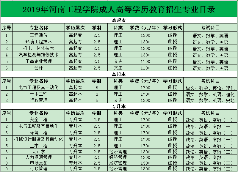 溫馨提示:2019年河南工程學(xué)院成人高考正在火熱招生中,想要參加今年成人高考的學(xué)生請注意,大家要提前進(jìn)行報名,不然錯過了,還要再等一年。報名熱線:18937149456(同微信)