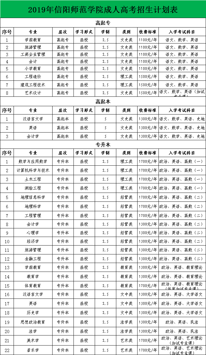 二、信陽師范學(xué)院成人高考招生專業(yè)