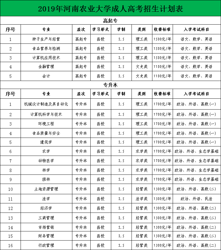 ? ? 河南農(nóng)業(yè)大學成人教育于1963年開始舉辦,是我省最早舉辦成人教育的高等學校之一,并通過每年十月河南成人高考面向社會招收高起專、專升本、高起本學生。 河南農(nóng)業(yè)大學成人高考招生火爆進行中,歡迎廣大有志青年涌躍報考河南農(nóng)業(yè)大學成人高考。