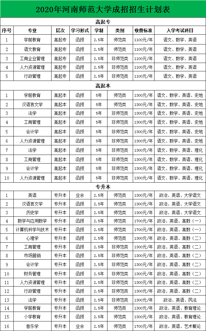 2020年河南師范大學(xué)成人高考招生簡(jiǎn)章【專(zhuān)業(yè)和學(xué)費(fèi)】