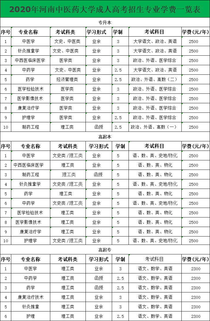 2020年河南中醫(yī)藥大學成人高考招生簡章【專業(yè)和學費】